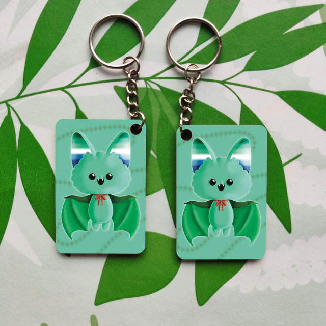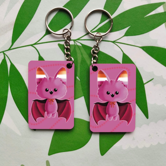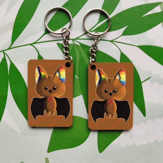 Porte-clés représentant une chauve-souris, aux couleur des drapeaux Lgbt.