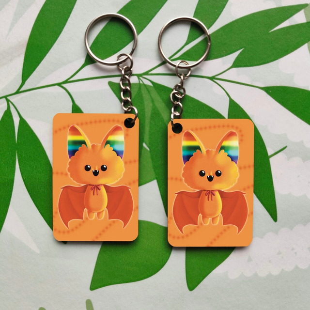 Illustration A4, porte-clés et marque-pages, représentant une chauve-souris Lgbt.