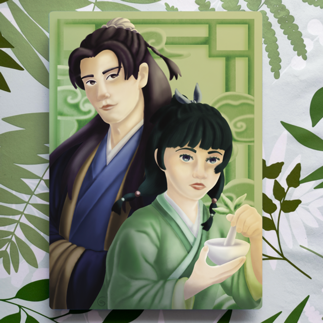 Affiche A4 représentant les deux personnages principaux des carnets e l’apothicaire.